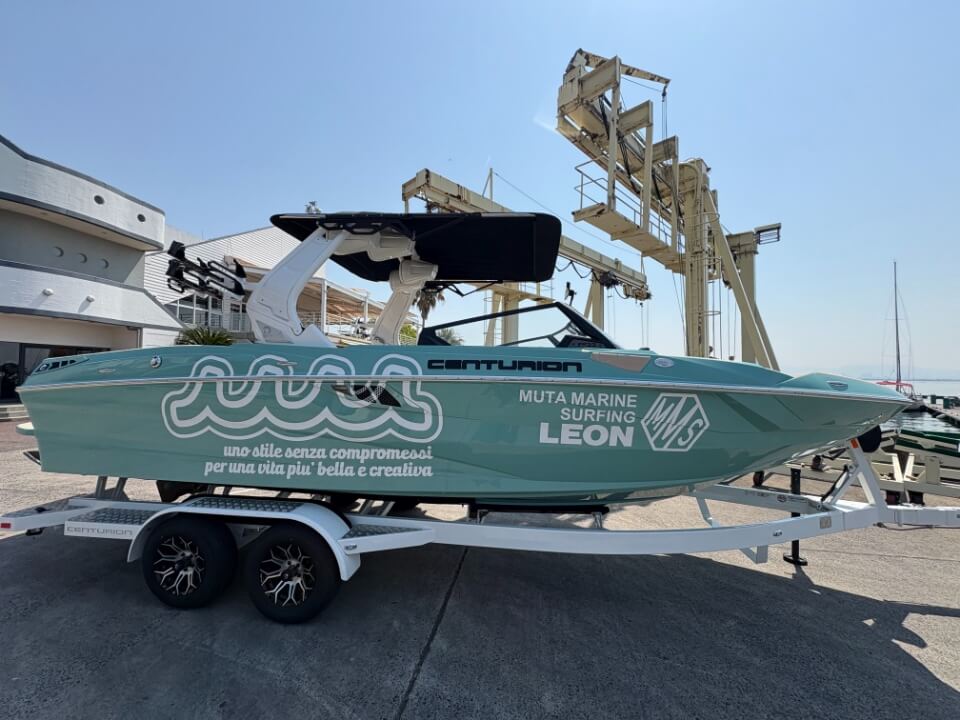 2025.10.06 LEON×muta MARINE×Centurion Boatsスペシャルコラボレーションモデル|進水式 2025年ボートショーで大きな話題を呼んだ、LEON × muta MARINE × Centurion Boats スペシャルコラボレ